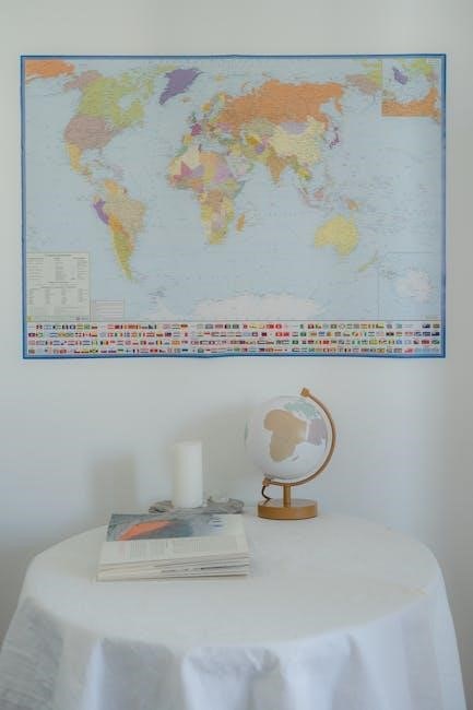 World flags PDFs often provide insights into the historical and cultural significance of each flag. Many designs reflect a nation’s heritage, with symbols tied to historical events, religious beliefs, or cultural values. For example, the cross on Scandinavian flags represents their shared Christian heritage, while the crescent in Islamic countries symbolizes faith. Colors also carry meaning, such as red for courage or green for natural abundance. These elements offer a glimpse into a nation’s identity, making flags a vital tool for understanding global diversity and shared human experiences across centuries.